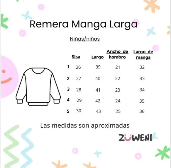 Talles disponibles: 1, 2, 3, 4 y 5