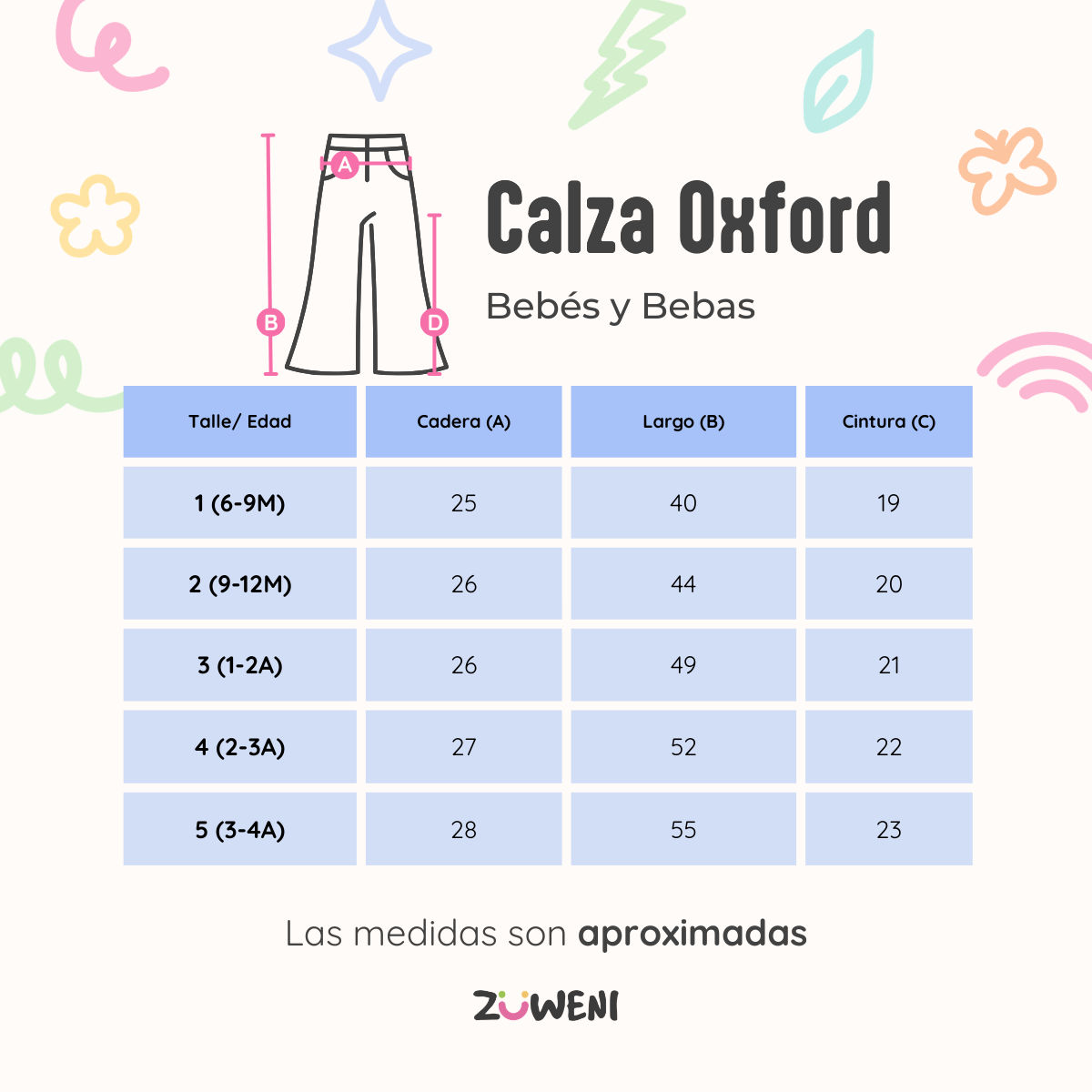 (6147) Calza Beba Oxford Frunce en Cintura - Algodón Rústico Elastizado